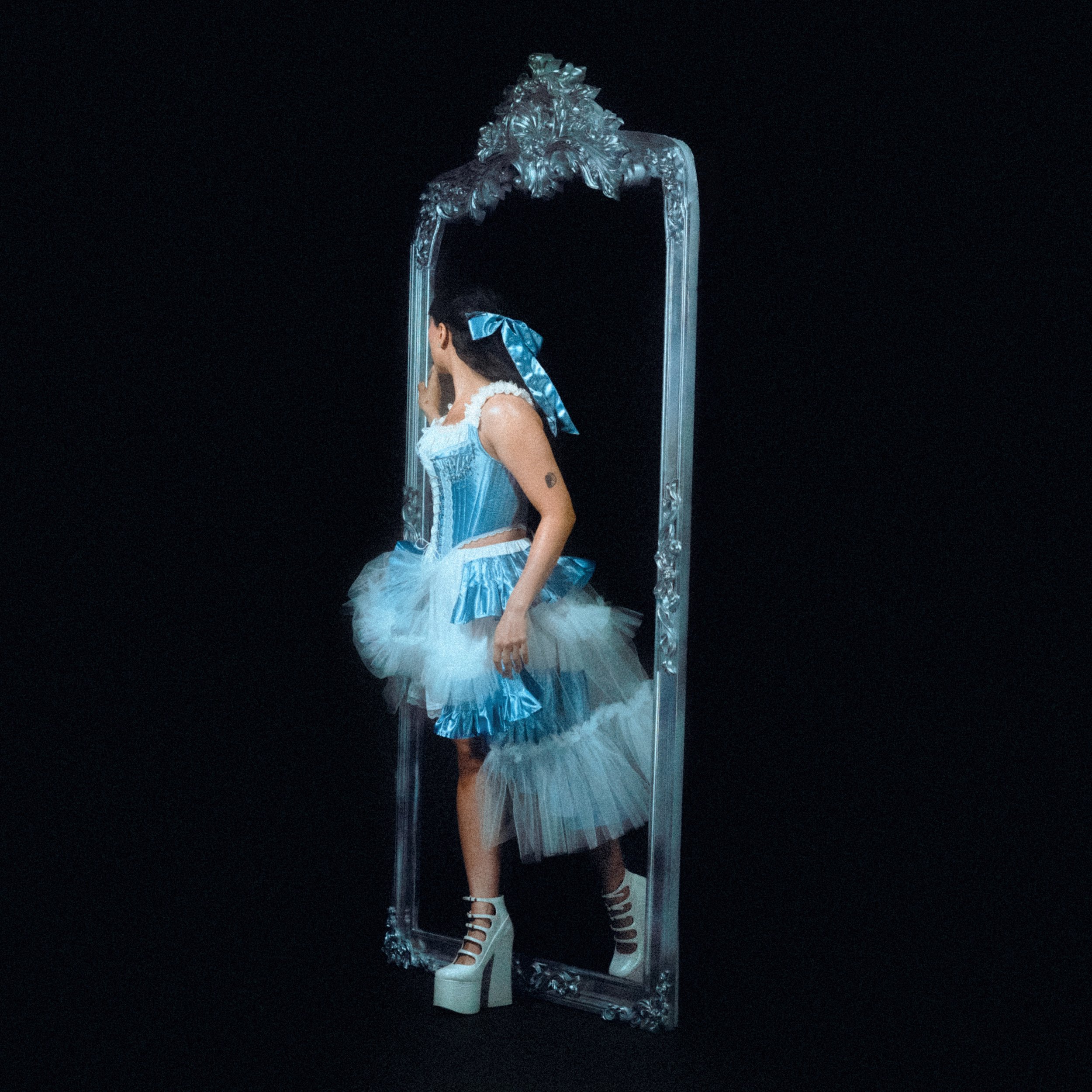 Album cover and press photos for Pom Pom Squad’s sophomore album ‘Mirror Starts Moving Without Me’