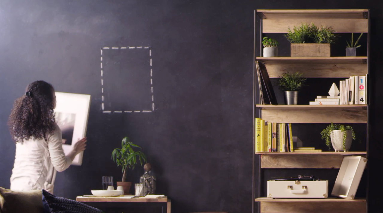 Designed and built a clean and modern apartment living room from ground up in a photo studio for a West Elm commercial. With a limited budget, a seamless 30-foot chalkboard wall was built by tightly pulling muslin over flats, and painting chalkboard paint over the thin fabric to cheat the look of chalkboard. Light wooden flooring was installed, and white baseboard was added to create a realistic apartment. The space was then designed using West Elm's "Great Values" collection of furniture pieces to create a young student's bright, chic, and economically accessible living room. Accents of green plants alongside mustard yellow and white set dressing were used to further the bright and lively environment.